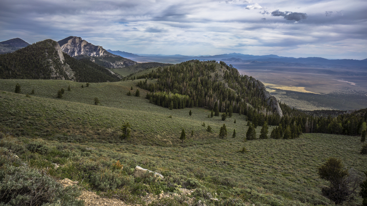 west side and a more gentler, rolling east side provide a prompt introduction to the Basin and Range topography that make up much of the state. From the ridgeline of the Egans, sweeping views of Steptoe Valley and White River Valley. This area is surprisingly green and lush, with pockets of pines, aspens and ample water. To stay on the crest and walk the ridge, much bushwhacking is involved. Cave Valley offers a low route alternative to the ridgeline if needed. The section ends at HWY 318 near Sunnyside. From here, it's a 30 mile hitch north to Preston to Resupply.