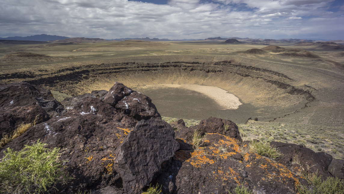The first section is mild compared to this epic leg of the BRT. From Sunnyside, the route heads west, stopping at a stunning deep blue hot spring oasis. There are many caves in the lower canyons of the Grant Range, and wildlife abound. The crest of the Grant Range offers many miles of challenging ridgewalking with hundred mile views. The canyons are rugged and untouched, no signs of human use here. The lush Quinn Canyon Range has several flowing creeks with trout, old mines to explore and even small waterfalls. The walk across Railroad valley and into the Lunar Crater Volcanic Field is an unforgettable desert trek, and represents the southernmost point along the BRT. After Lunar Crater, a 3400ft wide 430ft deep crater, the section ends at HWY 6, where it's an 80 mile hitch to Tonopah, the nearest town.